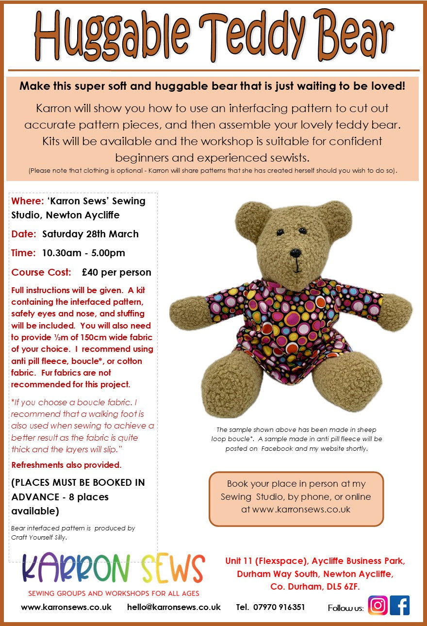 Please read the notes regarding fabrics as shown on the details. If you are unsure, please contact me at hello@karronsews.co.uk
